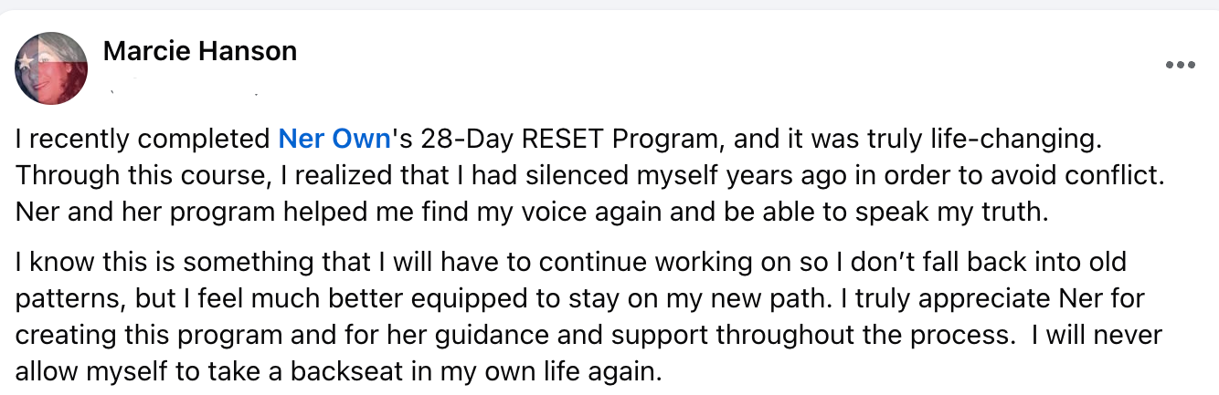 You’ll learn how to reconnect with your body, intuition, and decision making without second guessing or outsourcing your clarity. RESET helps you feel grounded enough to set boundaries, make choices, and move forward without fear running the show.